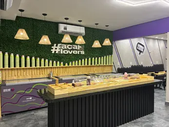 Projeto da franquia do Açai Granola unidade Guaruja - SP, o desafio aqui foi o imóvel que já estava sendo reformado para um restaurante oriental e transformamos na franquia Açaí Granola, ficou uma loja muito funcional e está linda.